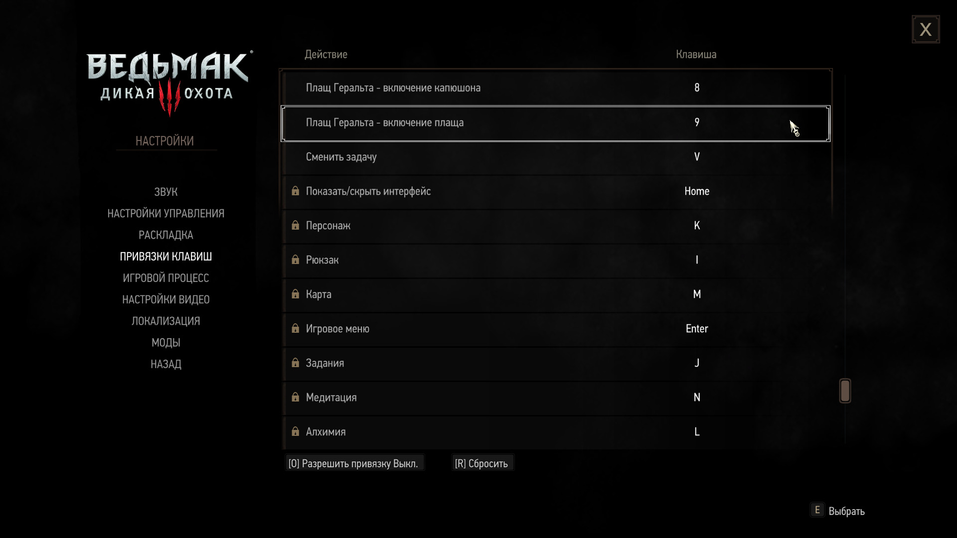 Нажмите 9, чтобы надеть и снять плащ.