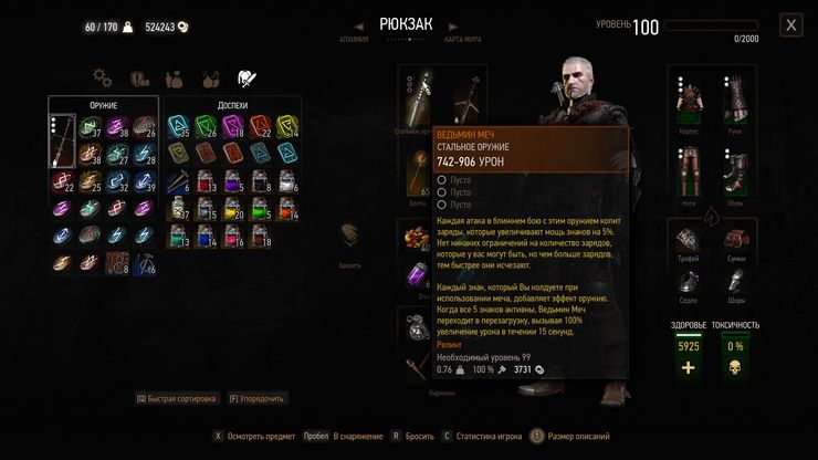 Если у Вас есть все 5 знаков на мече одновременно, "Ведьмин Меч" переходит в перезагрузку знаков, вызывая 100% увеличение урона и повышение эффективности отдельных эффектов знака в течение 20 секунд.