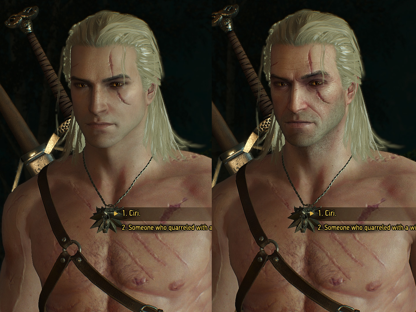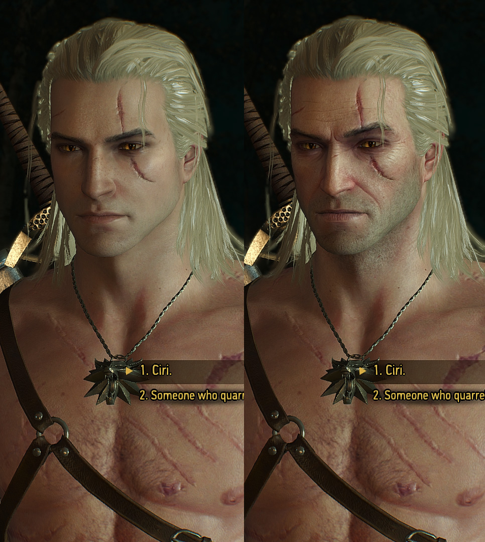 Данный мод изменяет внешность старого и брутального Геральта, делая ее более гладкой, чистой и светлой. На выбор несколько вариантов: