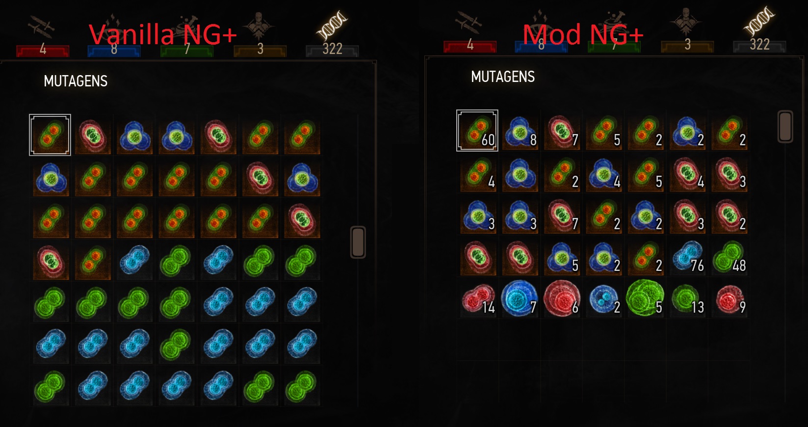 1. Когда игрок начинал NG+, все мутагены сокращались до 1, независимо от количества, которое было в обычной игре.
