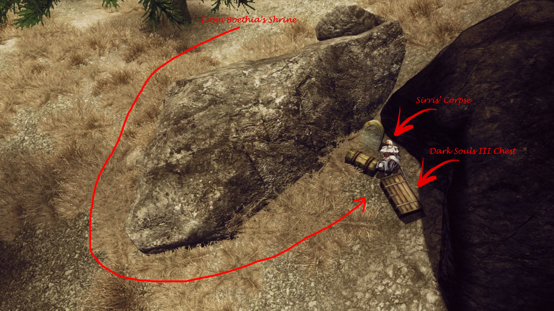 At the south of Boethia's shrine stands an isolated gravestone with a chest containing minor treasure...and also a Dark Souls III Chest.