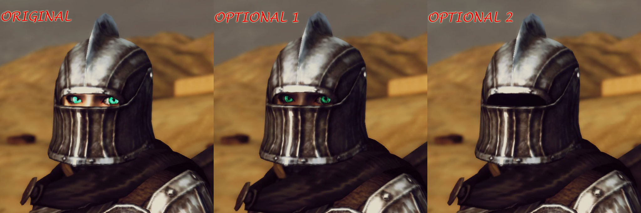 1. Full Knight armor and NPC Heavy Bascinet helmets from Aelia NPC (behind the house on Applewatch).