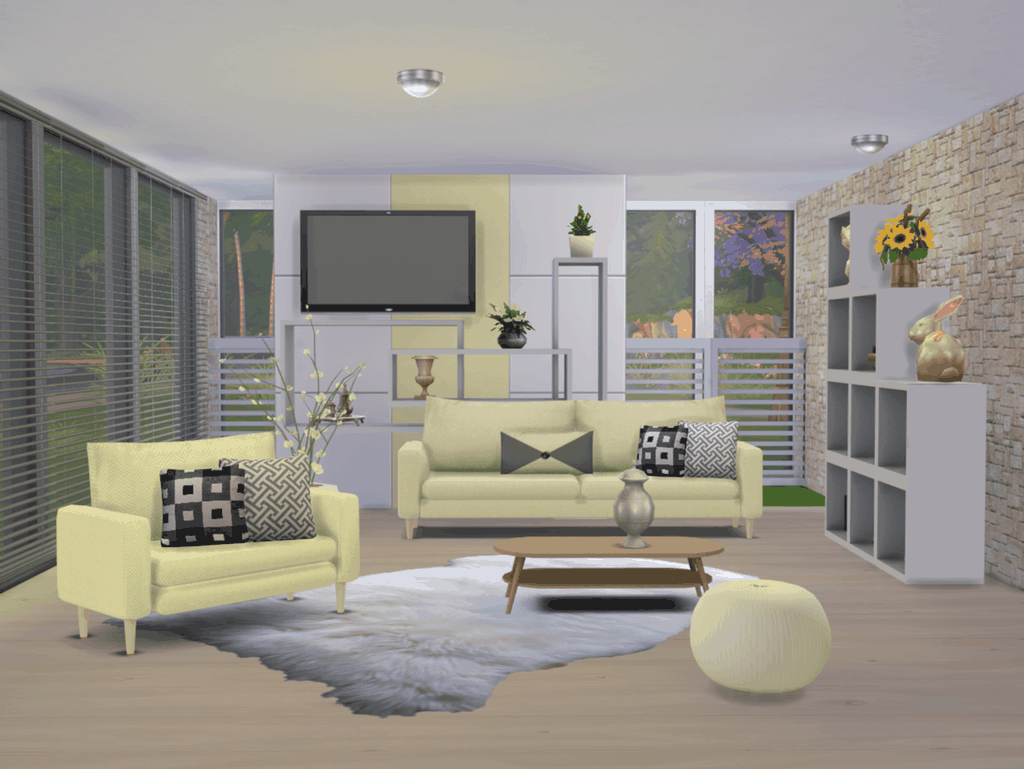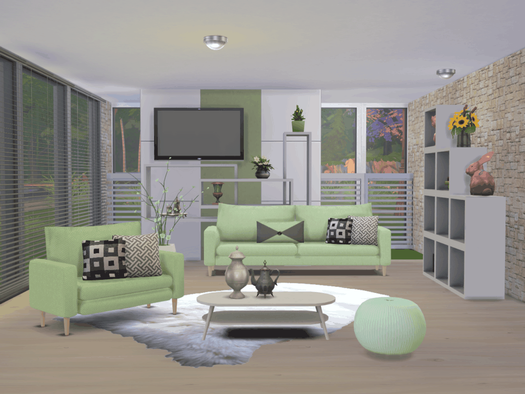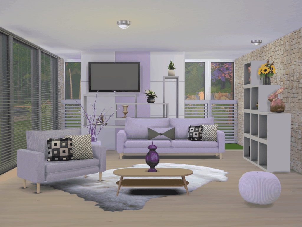 Набор мебели для гостиной в сладких пастельных тонах.