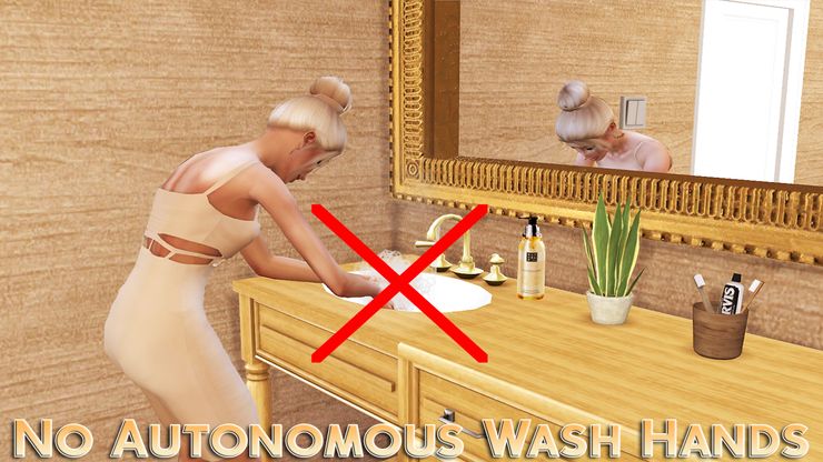 Некоторые симы никак не могут остановиться и постоянно пытаются вымыть свои руки. Этот мод отключает самостоятельное мытьё рук.