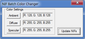 Эта программа для The Elder Scrolls III: Morrowind работает с форматом nif, регулируя спекулярные и диффузные свойства материалов для специфики nif. В принципе,