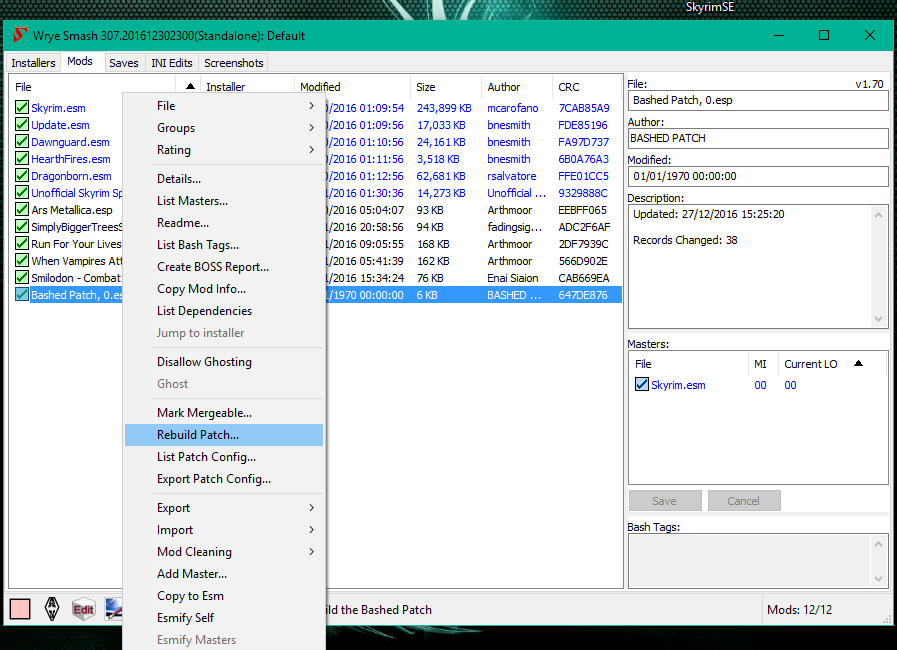 - Функция "Bashed Patch", которая позволяет улучшить совместимость модов и настраивать некоторые их детали.