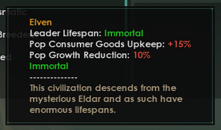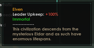 Сам аддон улучшает расовый трейт эльфов. Если раньше они за свое бессмертие платили повышенным количеством потребления ресурсов и пониженной рождаемостью, то теперь эти ограничения пропадают, а на их место, для баланса, приходит повышенная цена за содержание лидеров.