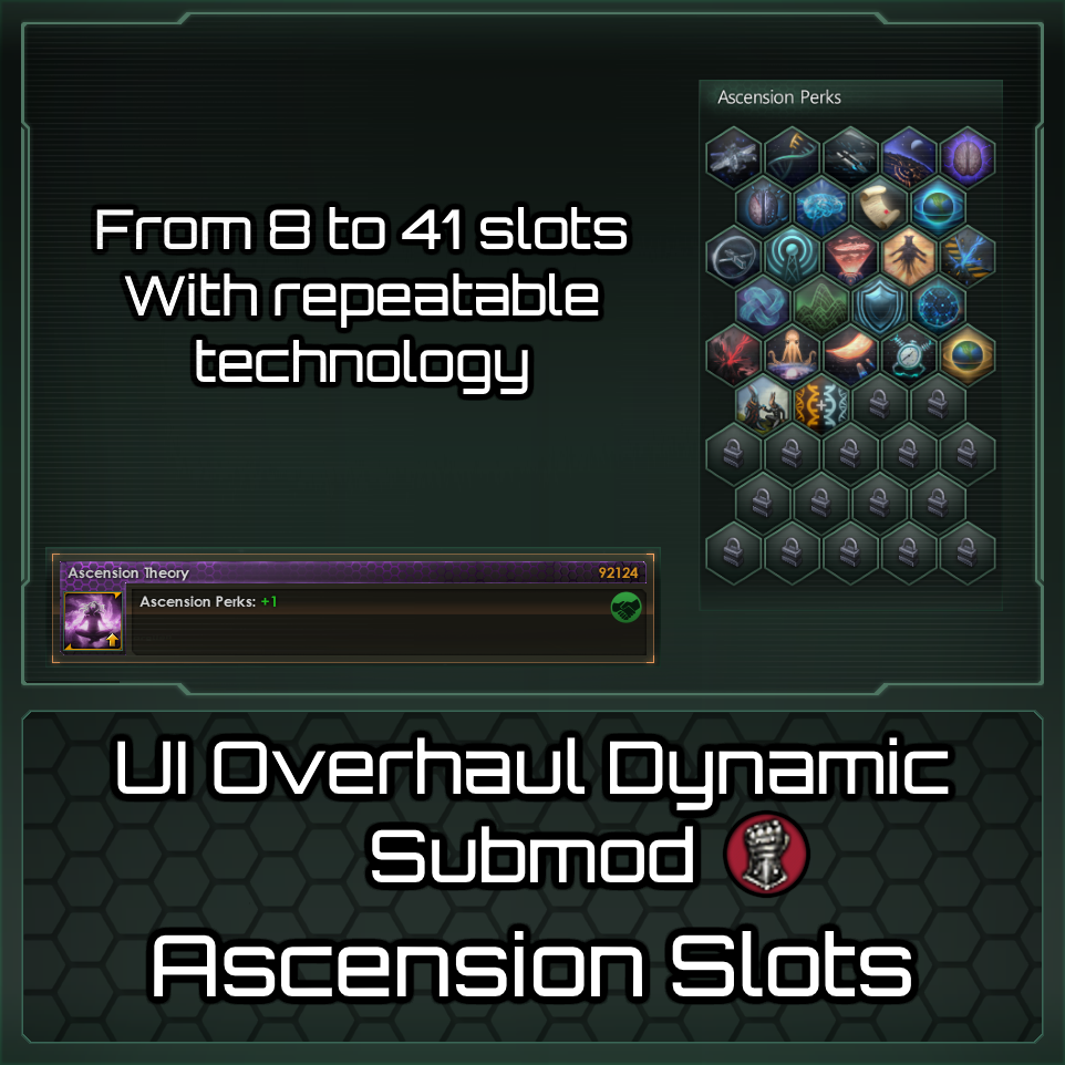 Ascension Slots — это аддон к моду UI Overhaul Dynamic. Оригинальный мод целиком перерабатывает интерфейс Stellaris.