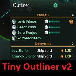 Мод делает иконки планировщика крошечными. Планеты, флотилии, космические базы — всё, что отображается в выпадающем списке справа, станет маленьким и лаконичным.