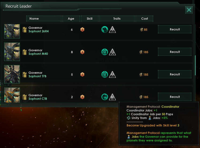 Governor Level Extended добавляет каждому губернатору две новые системы навыков: стратегию губернатора и дополнительная стратегия.