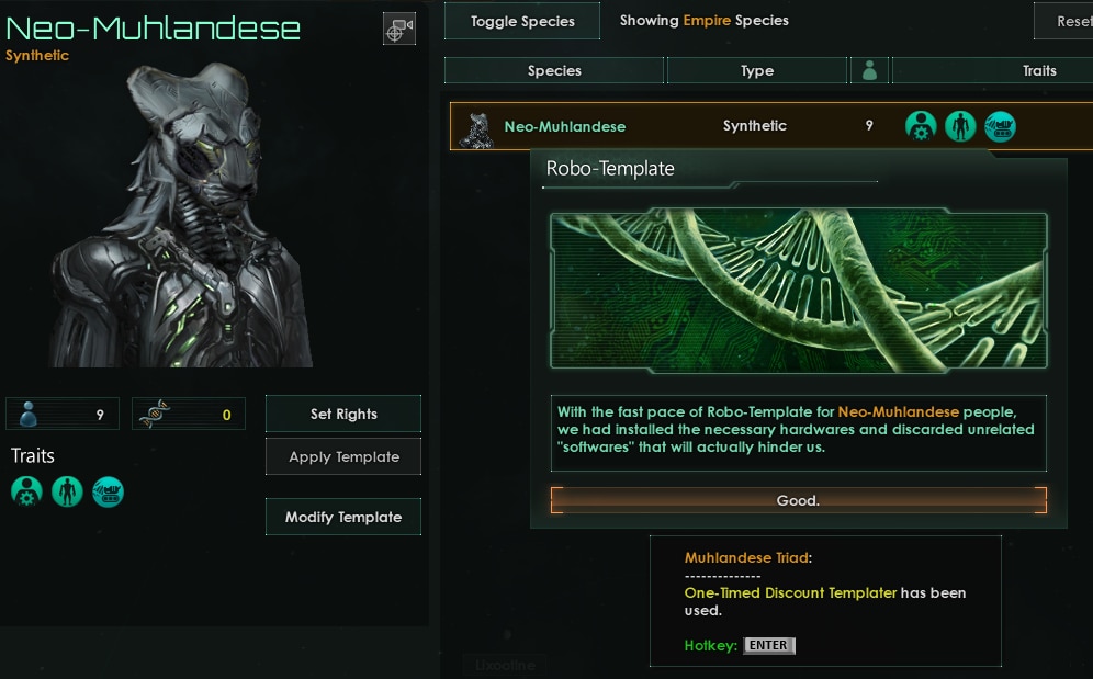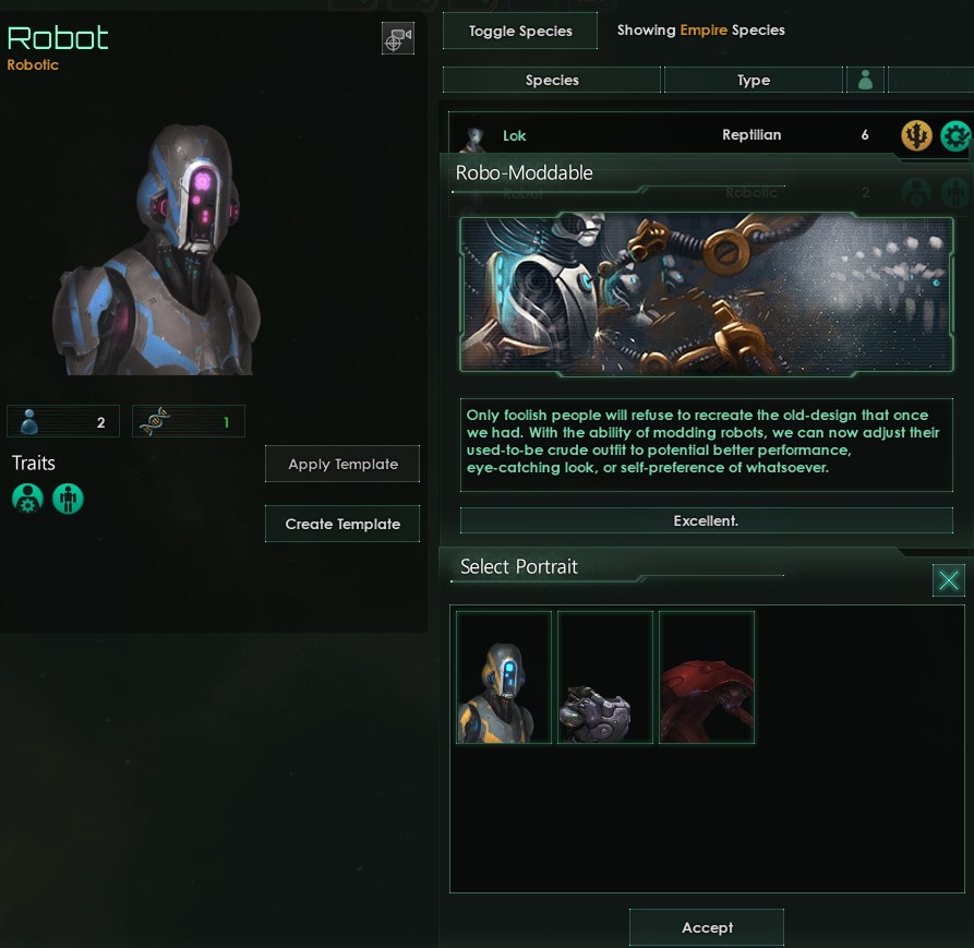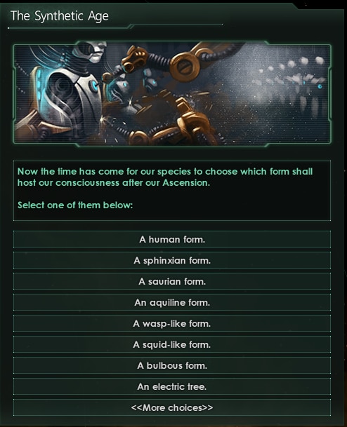 Animated Synthetics Portraits добавляет в игру 14 новых анимированных портретов синтетиков, а также возможность начать игру за вознесённую синтетическую империю.