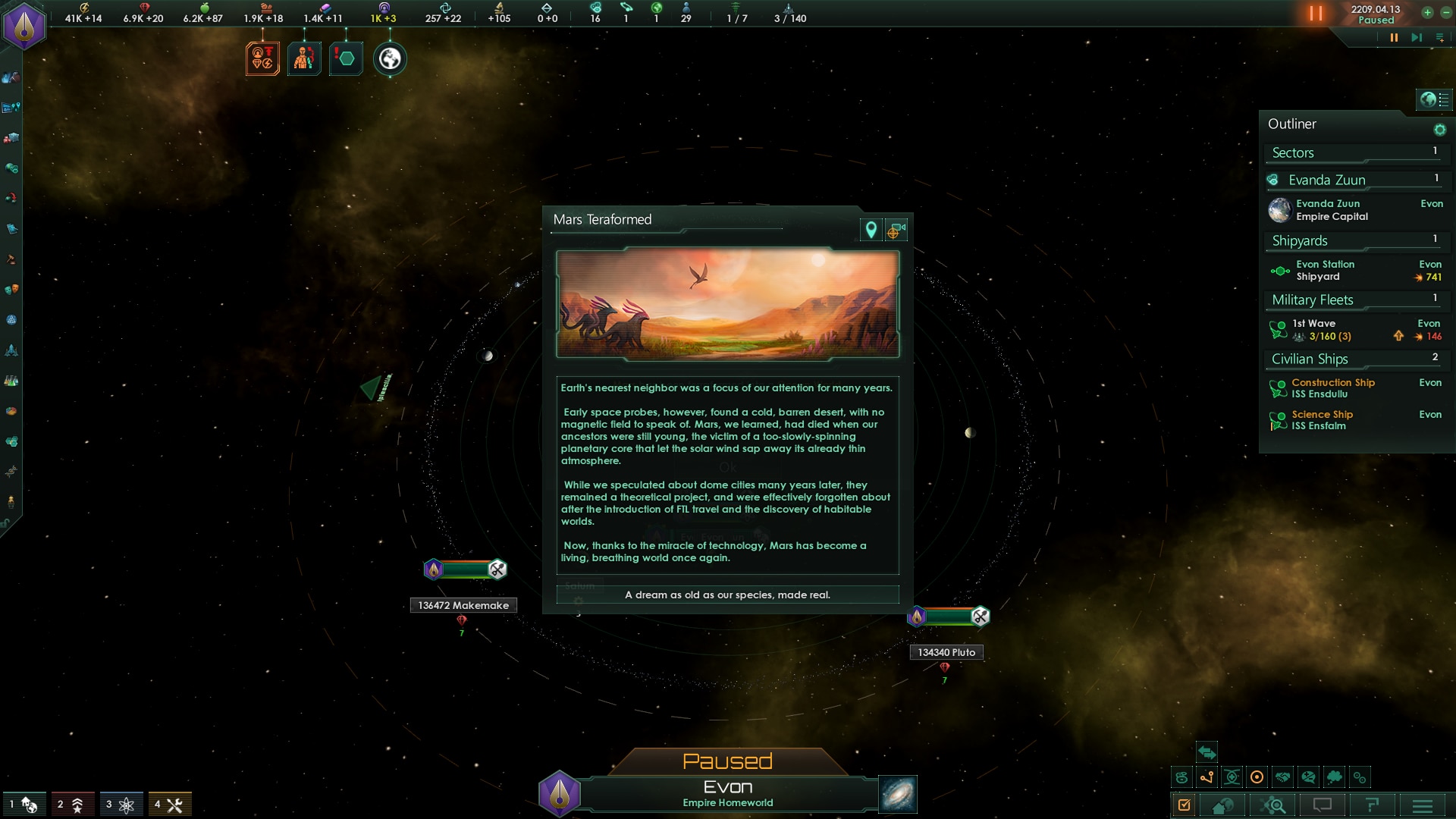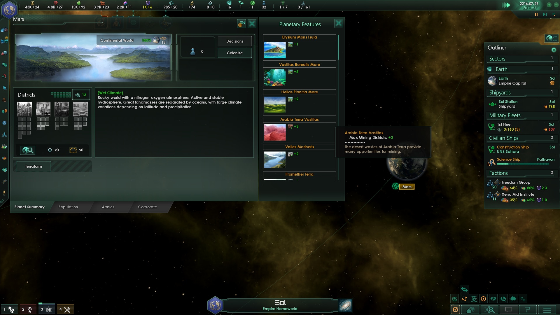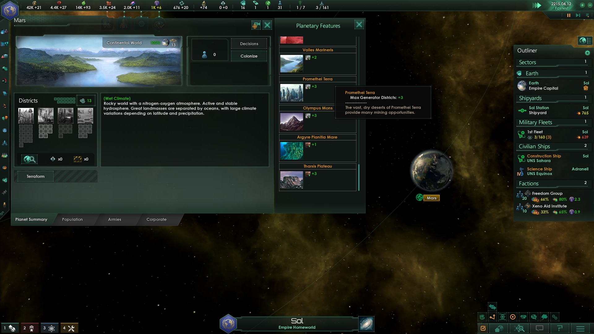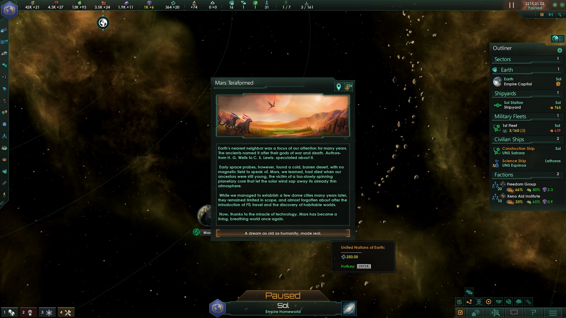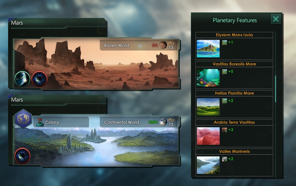 Мод добавляет терраформированному Марсу несколько особенных месторождений. Если вы играете за Человеческое Содружество или Объединенные Нации Земли, вы также получите 250 единиц Единства за достижение давней мечты человечества.