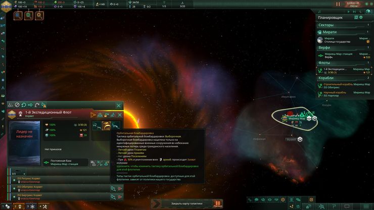 • Возможность орбитальной бомбардировки планет, уничтожающих за значительный промежуток времени, по крайней мере, для милитаристов .