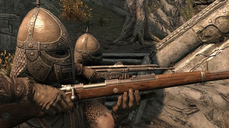 Гражданская война в Скайриме отныне ведется не мечами, луками и топорами, а с помощью пистолетов, гранат и ракетниц. Call of Duty - Skyrim добавляет более 12 новых полностью функциональных и хорошо реализованных оружий и взрывных средств в игру. Среди них винтовки с поворотным затвором, полуавтоматические винтовки, штурмовые винтовки, легкие пулеметы, пистолеты-пулеметы, ракетницы и гранаты.