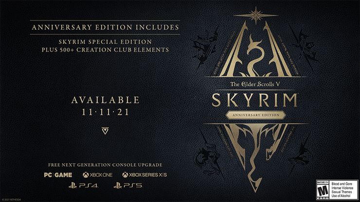 Издание будет называться Anniversary Edition и выйдет 11 ноября этого года. Переиздание приурочено к десятилетию Skyrim и выйдет на всех платформах: ПК, PS4, Xbox One, PS5 и Xbox Series X/S. Обновиться до новой версии смогут все обладателли Skyrim Special Edition, но по какой цене — пока неизвестно.