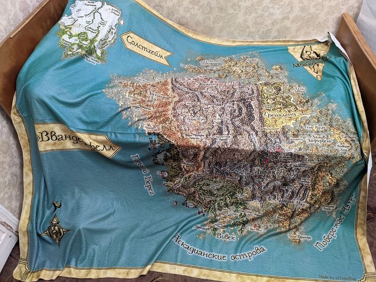 Изначально карта была на русском языке и была использована в качестве изображения для одеяла, для брата автора. В дальнейшем была опубликована английская версия, а также версия карты с даэдрическими надписями.