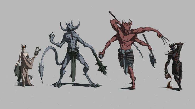 - Херне (Herne) и морфоидные даэдра также похожи на скампов, только с рогами. Подчиняются Мерунесу Дагону и Хирсину.