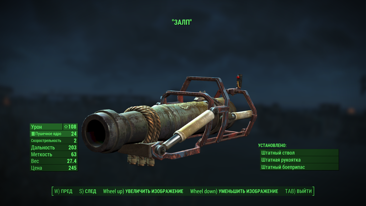 Локация — Получается по итогу квеста помощи команде Конститьюшн (USS Constitution) «Последний рейс Конститьюшн». В качестве боеприпасов использует настоящие пушечные ядра. Их немного (фактически — три десятка в Замке, ФортСтронг и Замковых Туннелях, и чрезвычайно редко встречаются у торговцев), но они наносят очень большой урон.