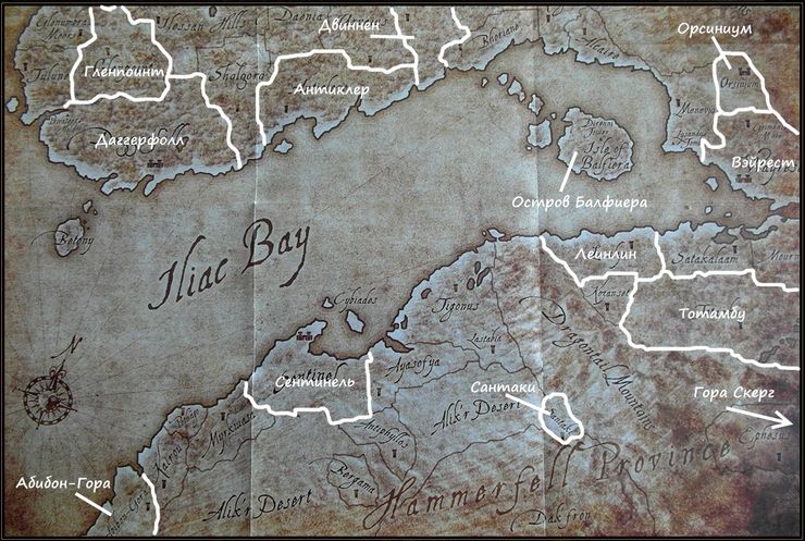 Маленькая провинция на юге Залива. На юге граничит с Хребтом Драконьего Хвоста, на западе – с Козансетом, с Морнотом – на востоке и с Леинлином и Сатакалаамом – на севере. Основное божество – Зенитар. Военная сила – Рыцари Скарабея. Если Вы внимательно читали о предыдущих провинциях, то и сами прекрасно догадаетесь, что входит в их обязанности. Чтобы вступить в рыцарский орден, кандидату приходится проходить опасные проверки навыков. Например, посетить руины двемеров на острове Строс М’Кай, пройти через их ловушки и победить двемерских центурионов.