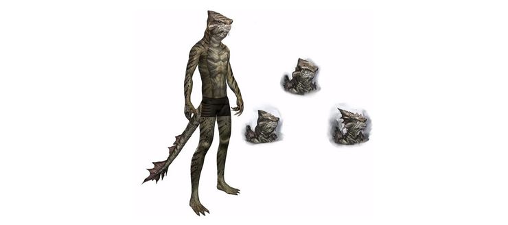 По внешнему виду напоминают гадюк. Рост варьируется от семи до восьми футов. Имеют чёрную чешую и глаза, а также огромную пасть, полную клыков. В большинстве своём живут во внутренних болотах Чернотопья и почти не взаимодействуют с имперцами и другими некоренными расами Чернотопья.