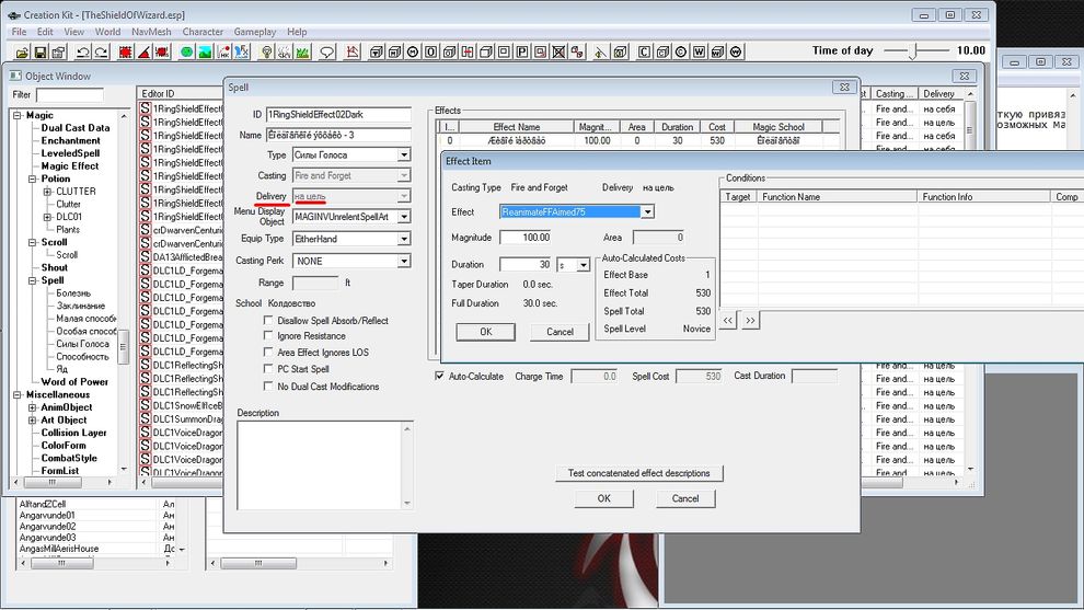 Со спеллами мы закончили, поэтому переходим во вкладку Object Window - Magic - > Magic Effect и открываем эффект DLC1AbFXReflectingShield