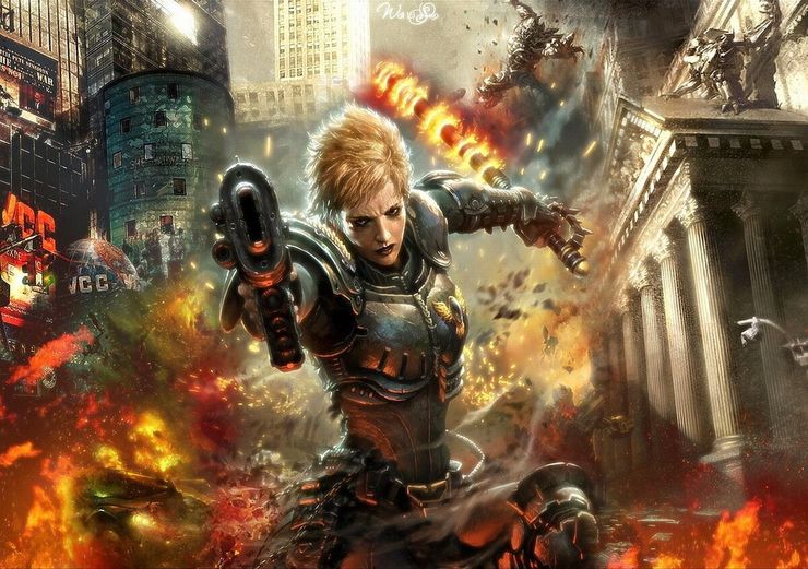 В трилогии не рассказывается об эпических событиях или судьбах вселенной, но очень много описаний Империума глазами его жителя, простого человека. Фаррер проливает свет на впечатления обычных горожан от гигантских интерьеров соборов, религиозные обычаи (например, как на планете Гидрафур проводят 7-й день перед священной мессой некого святого Балронаса. Спойлер – очень странно проводят), или занимательные подробности, как функционирует та или иная организация в мире будущего. Например, если вы читаете книги по «Вархаммеру 40к», вам наверняка попадались упоминания об астропатах – таинственных псайкерах, которые телепатически передают сообщения через космос. Оказывается, у них все довольно сложно устроено, в их Бастионе Псайкана. Этот «ведьмин курятник» - нечто среднее между тюрьмой и психушкой, обитатели которой могут в один далеко не прекрасный день уничтожить весь бастион или наслать кошмары на персонал, если к ним в голову из варпа что-нибудь заползет, или просто будучи не в духе. Кстати, я узнала наконец больше подробностей о том, что за жертвы Императору возят на черных кораблях к легендарному маяку Астрономикон. Об этой своеобразной традиции сказано в эпиграфе практически к каждому произведению по Warhammer 40k. Наверняка, вам попадались строки: «Более ста веков Император неподвижно восседает на своем Золотом Троне… <…> Он — разлагающийся властелин Империума, которому каждый день приносят в жертву тысячу душ». Ну вот, касательно этих жертв… По Фарреру, над псайкерами проводят обряд, когда их озаряет некое белое пламя императора. После этого они либо сгорают, если слабые и недостойные, либо обретают более сильные и очищенные способности. Но глаза при этом все равно выжигаются. 😖 Также в трилогии немного рассказано о традициях поклонения адептус механикус священному компьютеру и их способности за 4 секунды обвинить преступника, провести суд, вынести приговор да еще и его исполнить. Находится место и описанию адепта сороритас, этих прекрасных и смертоносных воительниц строгих нравов.